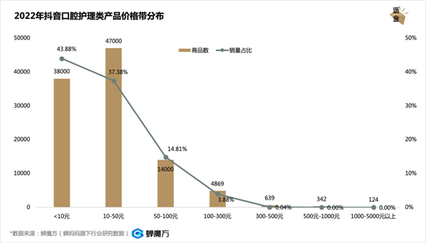 2022年抖音口腔护理类产品价格带分布