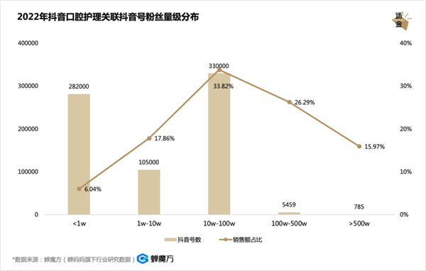 2022年抖音口腔护理关联抖音号粉丝量级分布