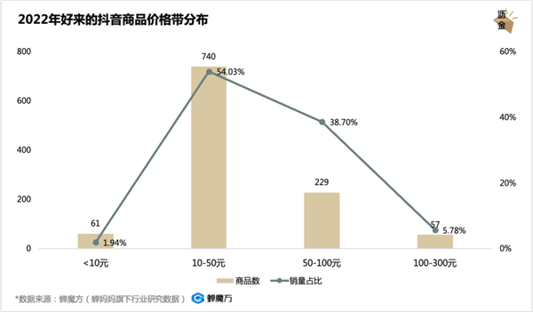 2022年好来的抖音商品价格带分布
